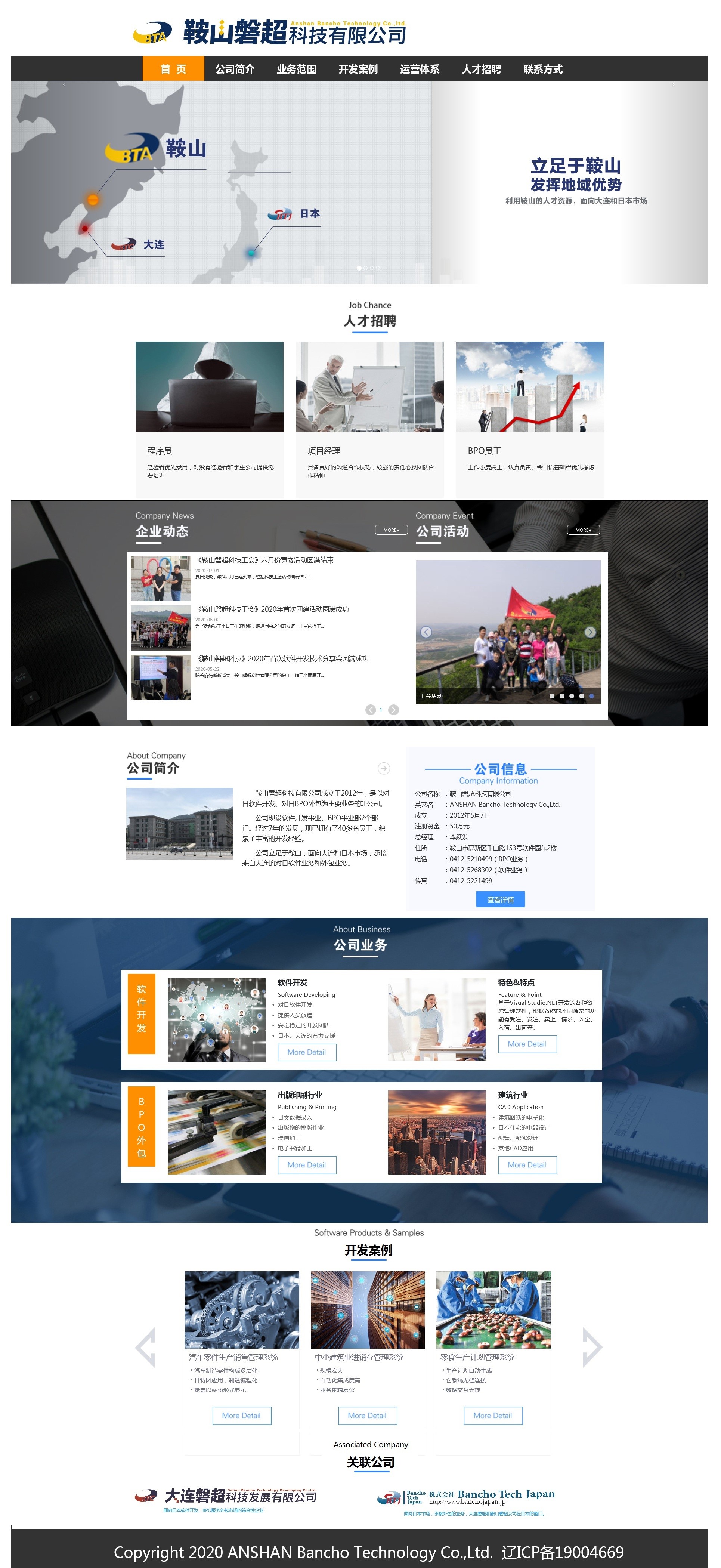 隨著鞍山公司的發(fā)展壯大,為了提升公司對(duì)外信息交流與合作的知名度,搭拓展公司對(duì)外網(wǎng)絡(luò)宣傳渠道,現(xiàn)將鞍山公司網(wǎng)站各項(xiàng)業(yè)務(wù)內(nèi)容豐富并從大連磐超網(wǎng)站中獨(dú)立出來(lái)。